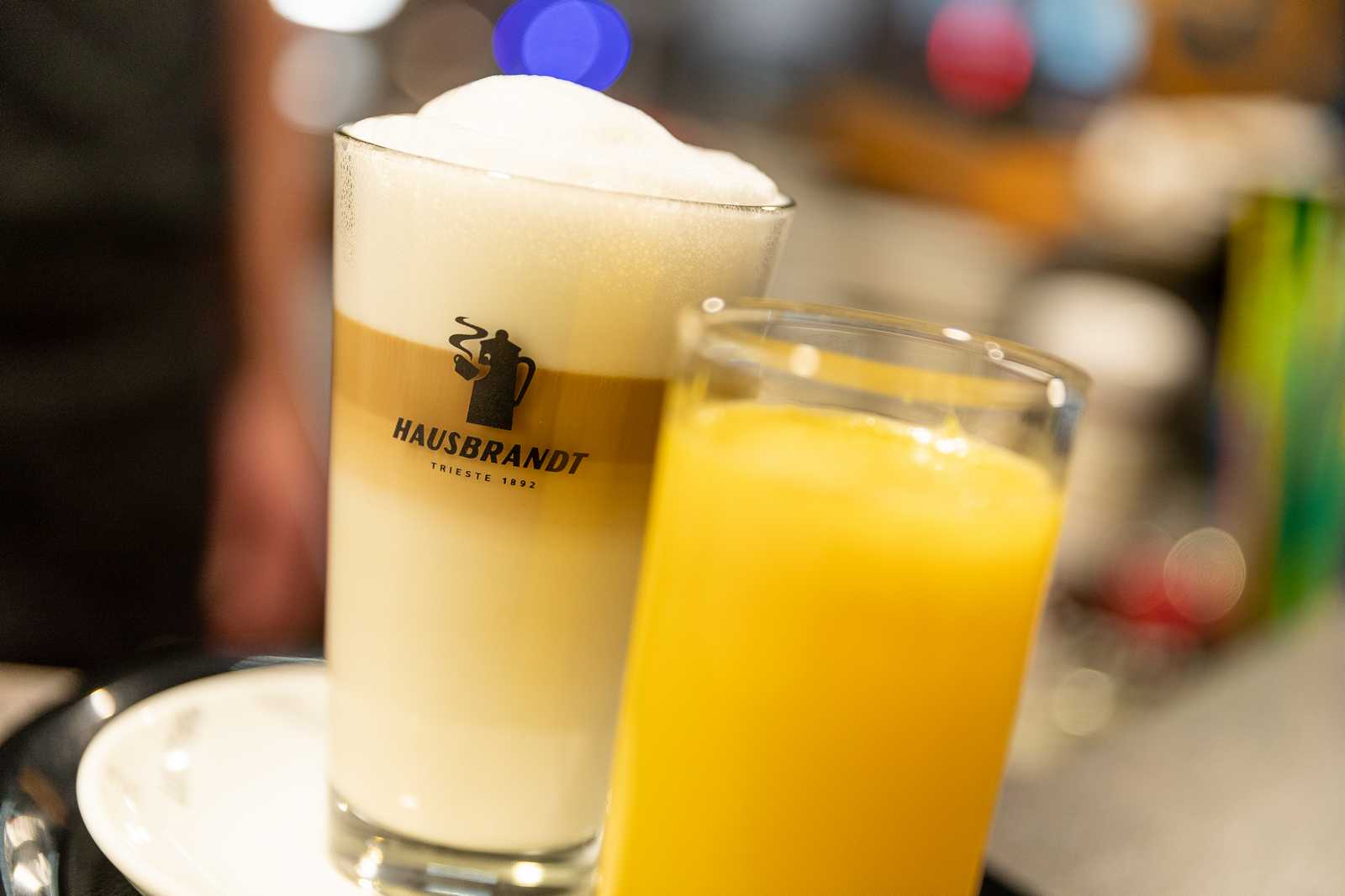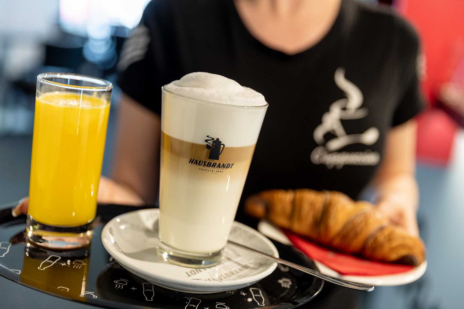 Dnevna jutranja ponudba: kava, rogljiček in sok.